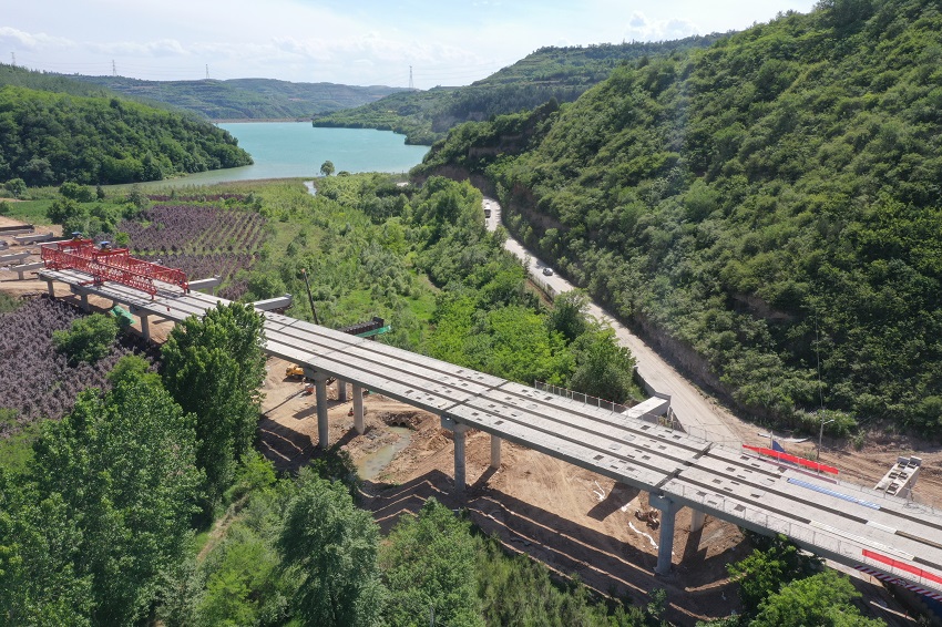 ▲花家河2號大橋預制梁架設