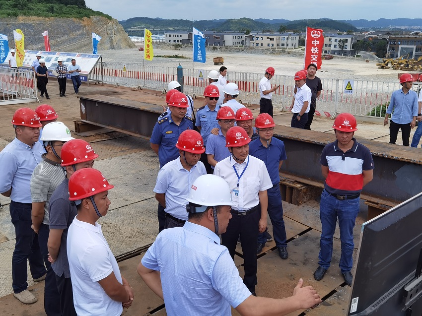 ▲貴州省建設工會主席孟日光觀看下壩大橋施工視頻