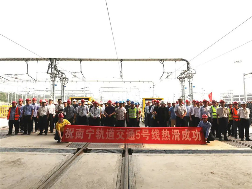 南寧地鐵5號(hào)線為南寧首條全自動(dòng)駕駛線路,是聯(lián)系南寧市西南—東北方向的骨干線,線路南起經(jīng)開區(qū)國(guó)凱大道,北至興寧區(qū)金橋客運(yùn)站,全長(zhǎng)20.2公里,共設(shè)車站17座,其中換乘站6座,均為地下線。此次熱滑試驗(yàn)圓滿完成,標(biāo)志著南寧地鐵5號(hào)線將進(jìn)入到列車上線調(diào)試階段,為全面開展綜合聯(lián)調(diào)奠定了堅(jiān)實(shí)基礎(chǔ)。指揮部將繼續(xù)堅(jiān)持“創(chuàng)新創(chuàng)效 優(yōu)質(zhì)發(fā)展”的企業(yè)宗旨,發(fā)揚(yáng)“開路先鋒”的鐵軍精神,不斷強(qiáng)化安全質(zhì)量、文明施工管控力度,集中資源精力向保通車目標(biāo)發(fā)起沖鋒。