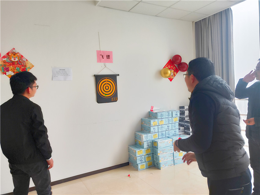 集團公司機關工會組織開展了迎新春游園活動,機關員工通過參與投飛鏢、套圈圈、猜盲盒、投壺等豐富多彩的小游戲,共同營造營造了其樂融融、歡快祥和的節日氛圍。
