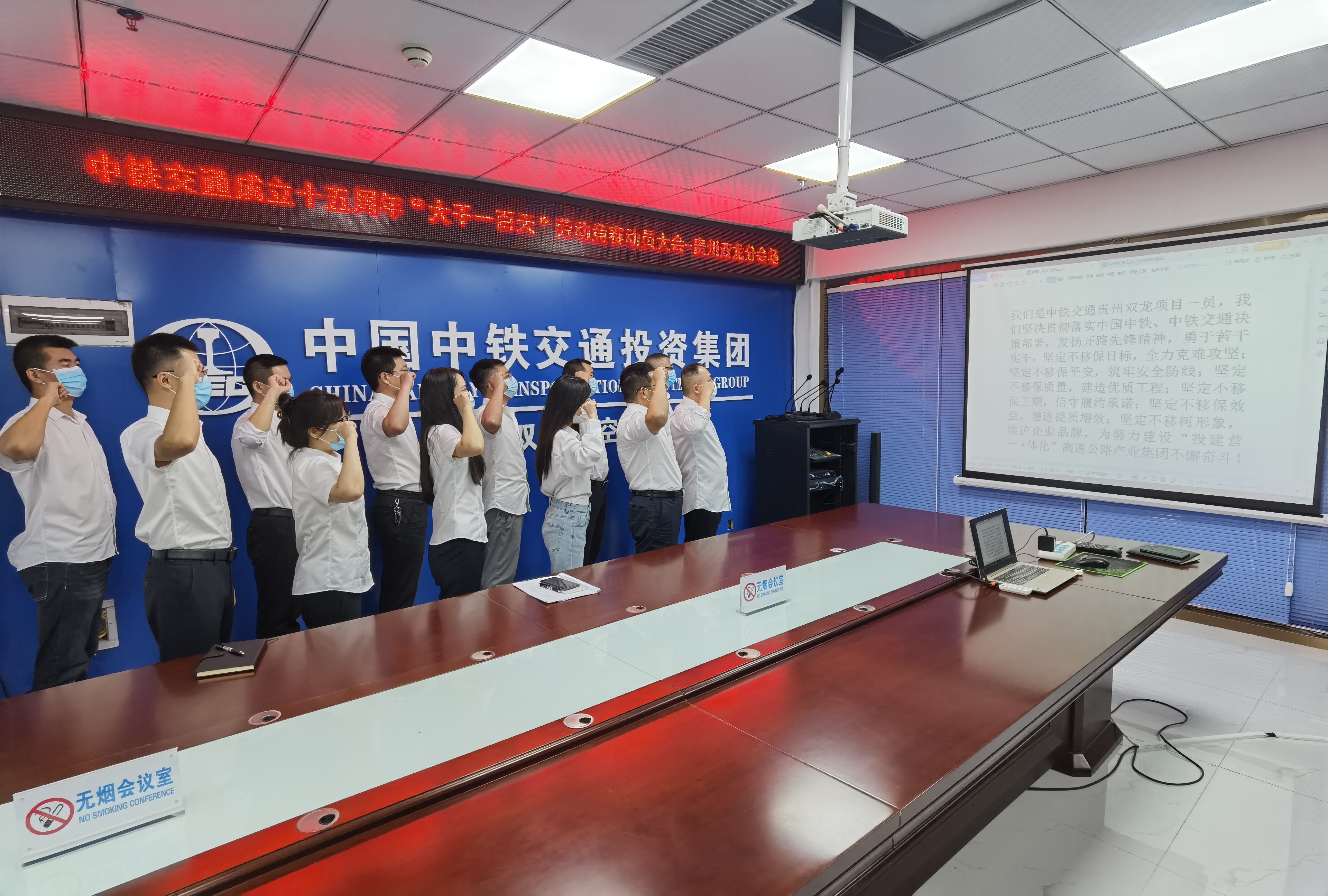 9月20日,是貴州雙龍項目所在貴陽區域疫情解封的第一天,貴州雙龍項目全體員工迅速返崗召開勞動競賽動員大會暨主題大討論活動,紛紛表示將不負重托,努力做好各項工作,安全優質高效完成全年目標任務,以優異成績迎接黨的二十大勝利召開。